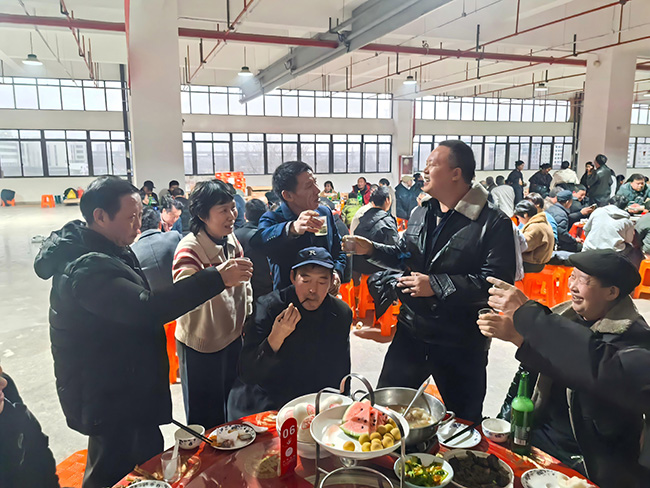 生产部的负责人每到一桌敬酒,都会一手端着酒杯,一手挥动奋斗的拳头,嘴里喊着:“加油!加油!2026我们继续加油!”这声音,如同一记重锤,敲响在每个人的心间;又似一声号角,吹响了迎接新年的战斗乐章;更像一句誓言,宣告着走向胜利的坚定决心。